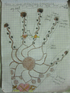 Later, I found two pictures she drew of decorated hands (with nail polish).
